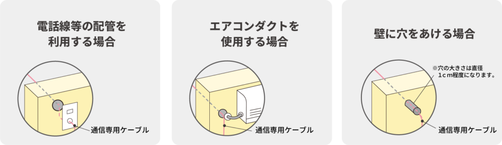光接続箱により専用ケーブルをテレビ配線とは別に配線する為、壁面にケーブル貫通穴が必要になります。