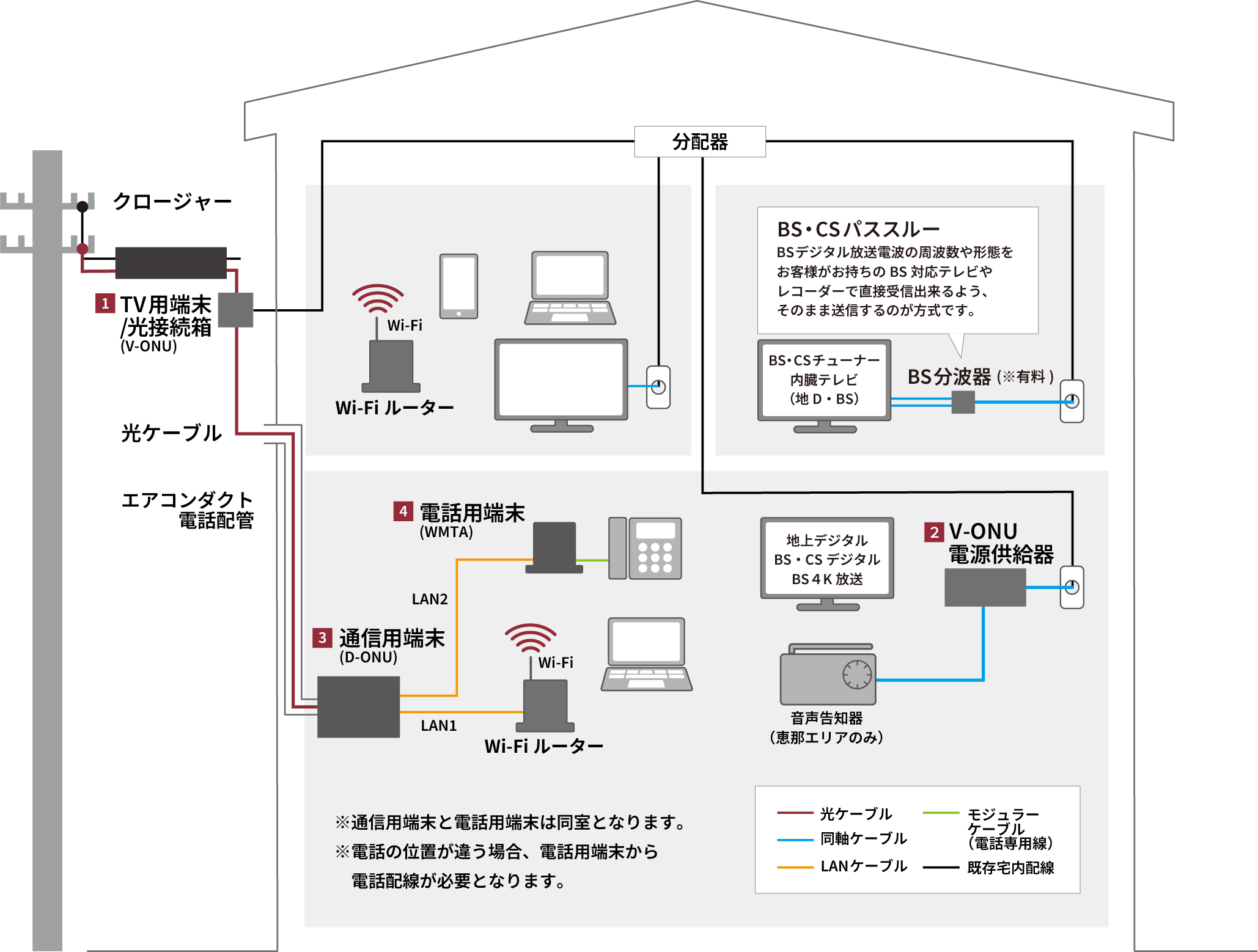 ※宅内の状況により、TVブースターなどが必要になる場合があり、その工事等で別途費用が発生する場合があります。