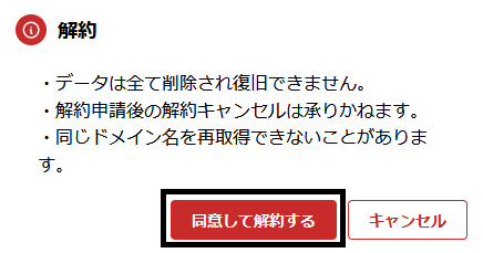 5.注意事項を確認していただき問題がなければ「同意して解約する」をクリックする。